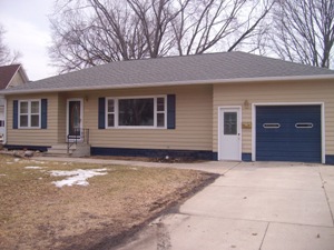 | Palo Alto County, Iowa 1701 Main Street Emmetsburg, Iowa 50536 This one story ranch style home is move-in ready and located on a corner lot. There is a large backyard and this home would be great for a first time buyer.